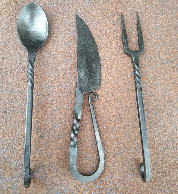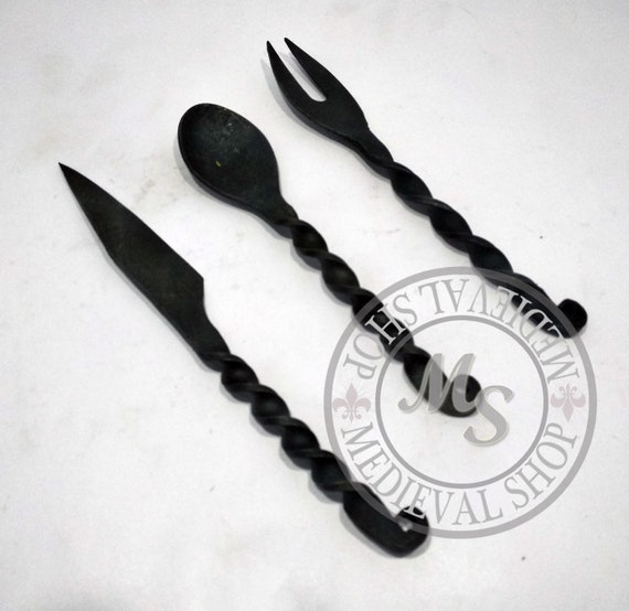Hand Forged Iron Medieval Cutlery Set Viking Traditional Etsy