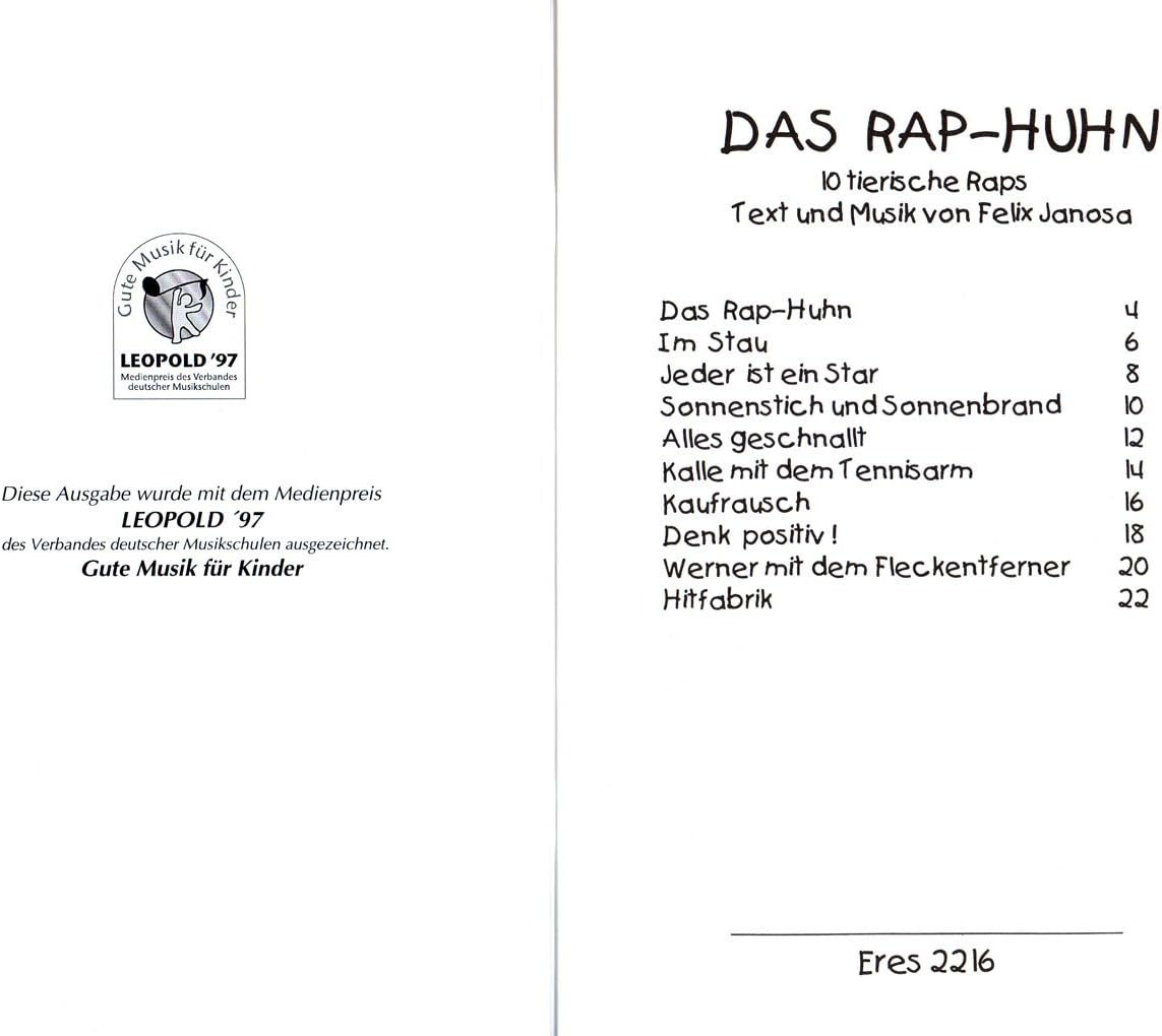 Das Rap Huhn Von Felix Janosa Notenbuch Cd Eres Eres2216 Ebay
