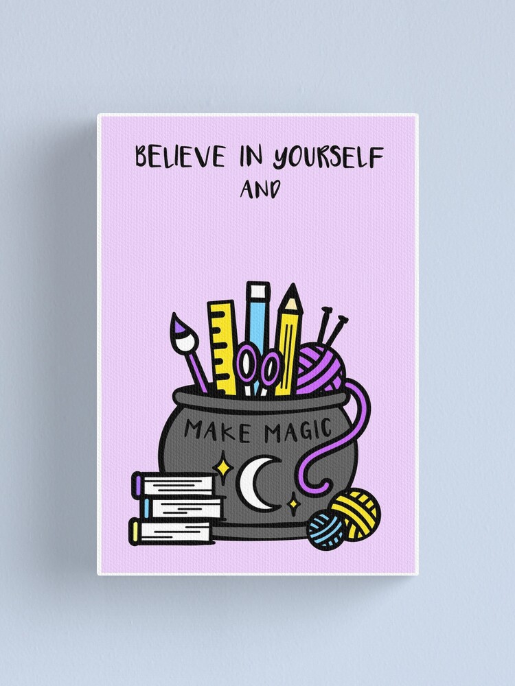 Glaube An Dich Selbst Mache Magie Inspirierende Kreativitat Zitat Viel Gluck Illustration Halloween Kessel Gespenstisch Suss Leinwanddruck Von Tachadesigns Redbubble