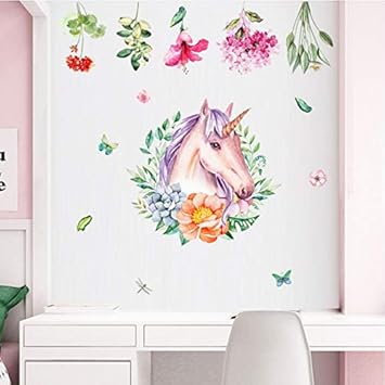 Nette Blume Kranz Einhorn Wandaufkleber Pferd Tapete Aufkleber Kinderzimmer Madchen Schlafzimmer Dekoration Amazon De Baumarkt