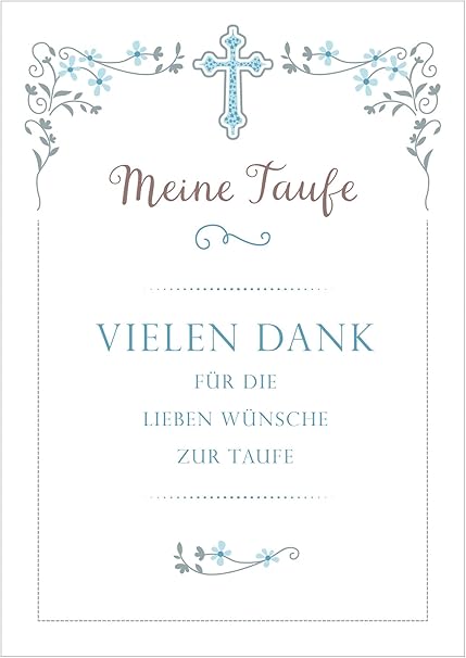 Hier gebe ich regelmäßig Bastelkurse, komm aber auch gerne zu Dir nach Hause für eine Stempelparty mit Deinen Freunden, Bekannten und Verwandten!. Eine weitere Version der Taufkarte ist die Dankeskarte zur Taufe Damit erweisen sich Eltern des Täuflings für Glückwünsche und Geschenke zur Taufe erkenntlich Was schreibe ich in Taufkarten?. Zur Taufe wünsch ich Dir, einen großen Teddybär Ich wünsche Dir auch, ganz viel Sonne auf deinem Bauch Eine große Hand, die dich hält und beschütz vor dem Bösen dieser Welt Ich wünsch Dir Liebe, Glück und Seligkeit und einen Freund, der immer nah und niemals weit.