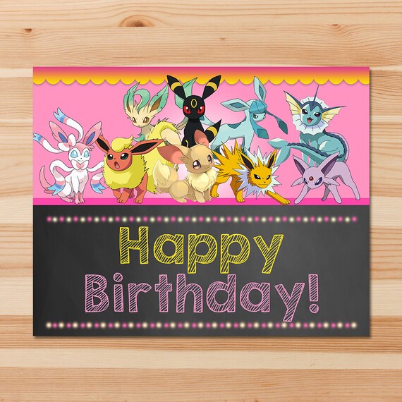 Pokemon Eevee Evolutions Happy Birthday Sign Pink Girl Etsy