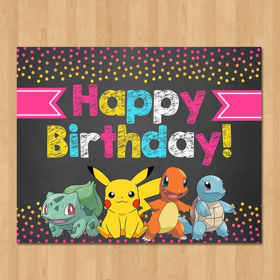 Pokemon Happy Birthday Sign Chalkboard Pink Yellow Girl Etsy