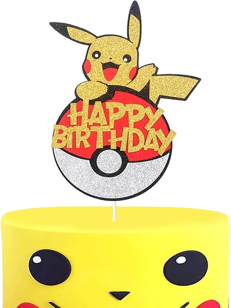 Amazon Com Liliparty Hello Pikachu Happy Birthday Cake Topper Cute Pokemon Inspired Poke Ball Cake Decor Trainers Themed Party Decoration Glitter Kid Birthday Party Supplies Home Kitchen