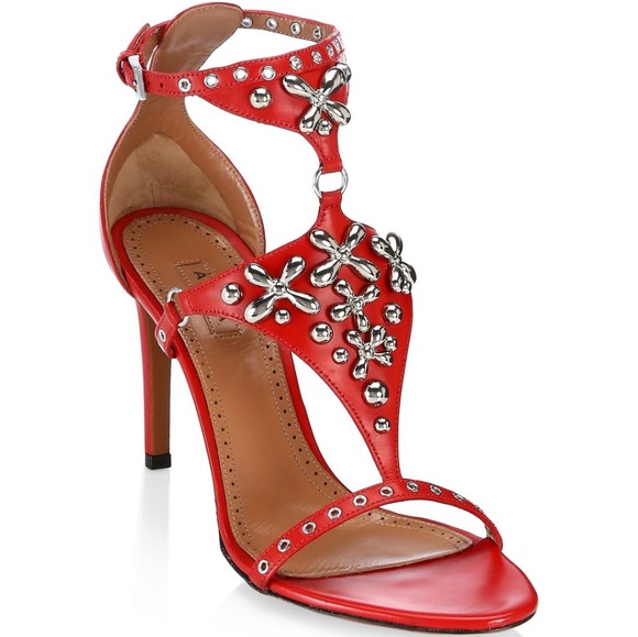 Red Bombe 110mm Grenadine Suede Ankle T Strap Studded Sandal Heel Pumps Size EU 39 (Approx US 9) Regular (M, B) EU 39 (Approx US 9) $ $1,800 On Sale 3 ALAÏA Nude Suede Caged Sandals Platforms Size EU 37 (Approx US 7) Regular (M, B) EU 37 (Approx US 7) $ On Sale 30. Alaia’s sandals feature buttons and pyramid studs around the toe and ankle straps, a zipper around the counter and a 45inch heel The shoes are currently sold out. Buy 100% authentic Alaia Brown Leather Studded T Strap Flat Sandals Size 40 Alaia and enjoy offers up to 80% off We offer quick delivery whether you’re in UAE, KSA, Kuwait and worldwide!.