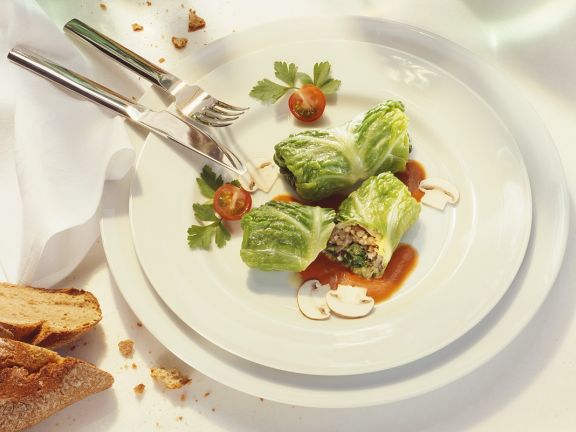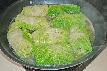 Kohlrouladen Zwiebeln, Bacon, Grünkern, Salz, Pfeffer, Weißkohl, Butterschmalz, Mett, Eier, Senf, Muskatnuss, Steinpilze, Schlagsahne, Crème fraîche. Rezept für 4 Personen Arbeitszeit Minuten Kochzeit 10 Minuten. Vegane Kohlrouladen kommen bei uns ebenfalls sehr oft auf den Tisch Gefüllte Kohlrouladen sind auf der ganzen Welt beliebt In Polen sind sie unter dem Namen „Golumpki“ bekannt, in Russland heißen sie „Golubtsi“ und im Nahen Osten „Malfouf“ Alle enthalten unterschiedliche Füllungen, Soßen und Zubereitungsarten.