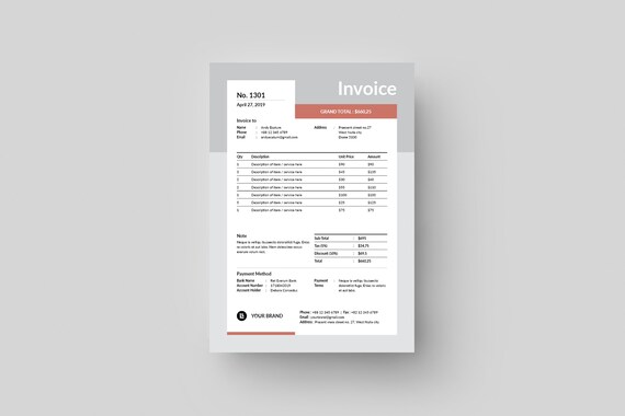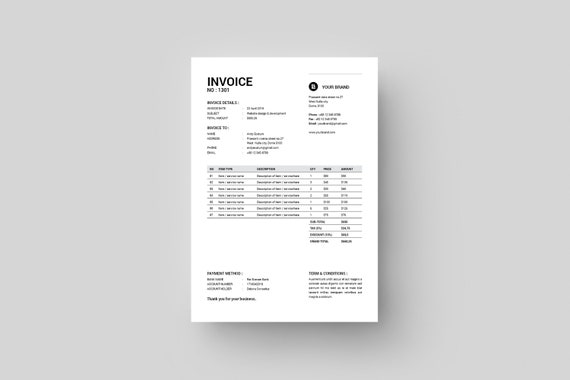 Moderne Rechnungsvorlage Schwarz Und Weiss Rechnung Design Etsy