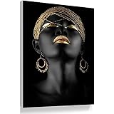 Cyalla Afrikanische Frau Mit Einem Gold Kopftuch Wandkunst Leinwand Gemalde Moderne Schwarze Madchen Pop Art Dekorative Leinwand Fur Wohnzimmer 60x80 Cm Amazon De Baumarkt