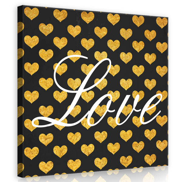 East Urban Home Leinwandbild Love In Schwarz Gold Weiss