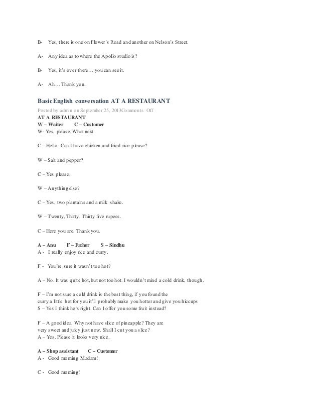 Where Are You From?. Speaking English Lessons After becoming comfortable with the entire conversation, become Person A by clicking on the Person A button You will hear only Person B through the audio file. Returning a Radio (1) Returning a Radio (2) Exchanging a DVD Player;.