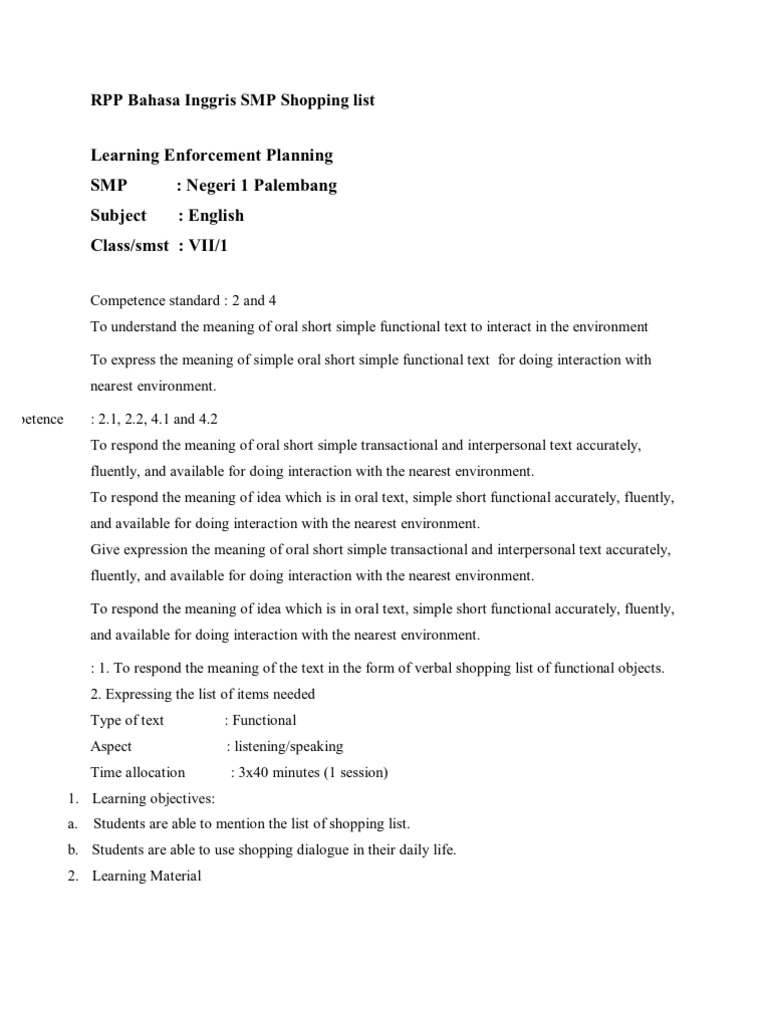 Rpp Bahasa Inggris Smp Shopping List Educational Assessment Facebook