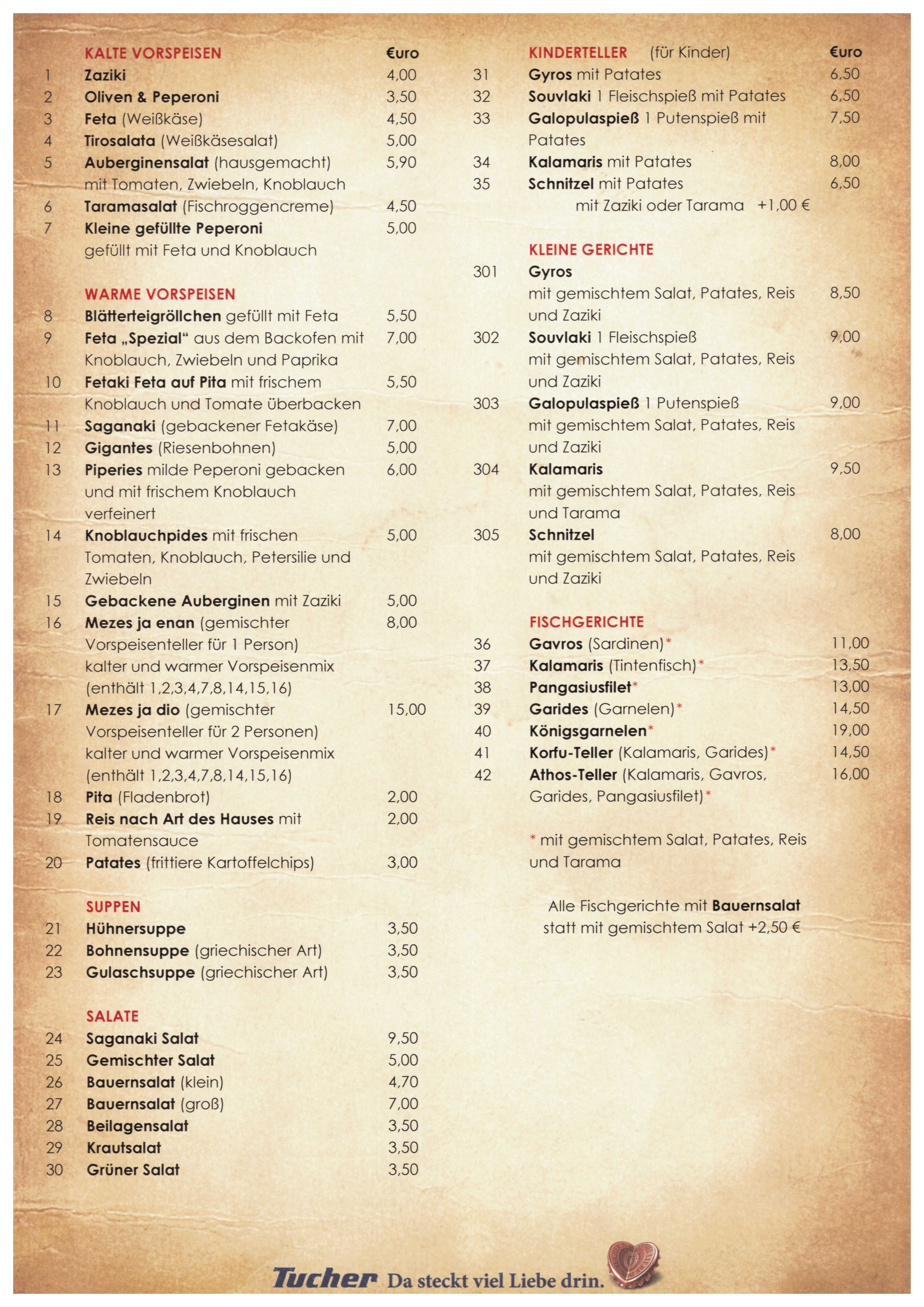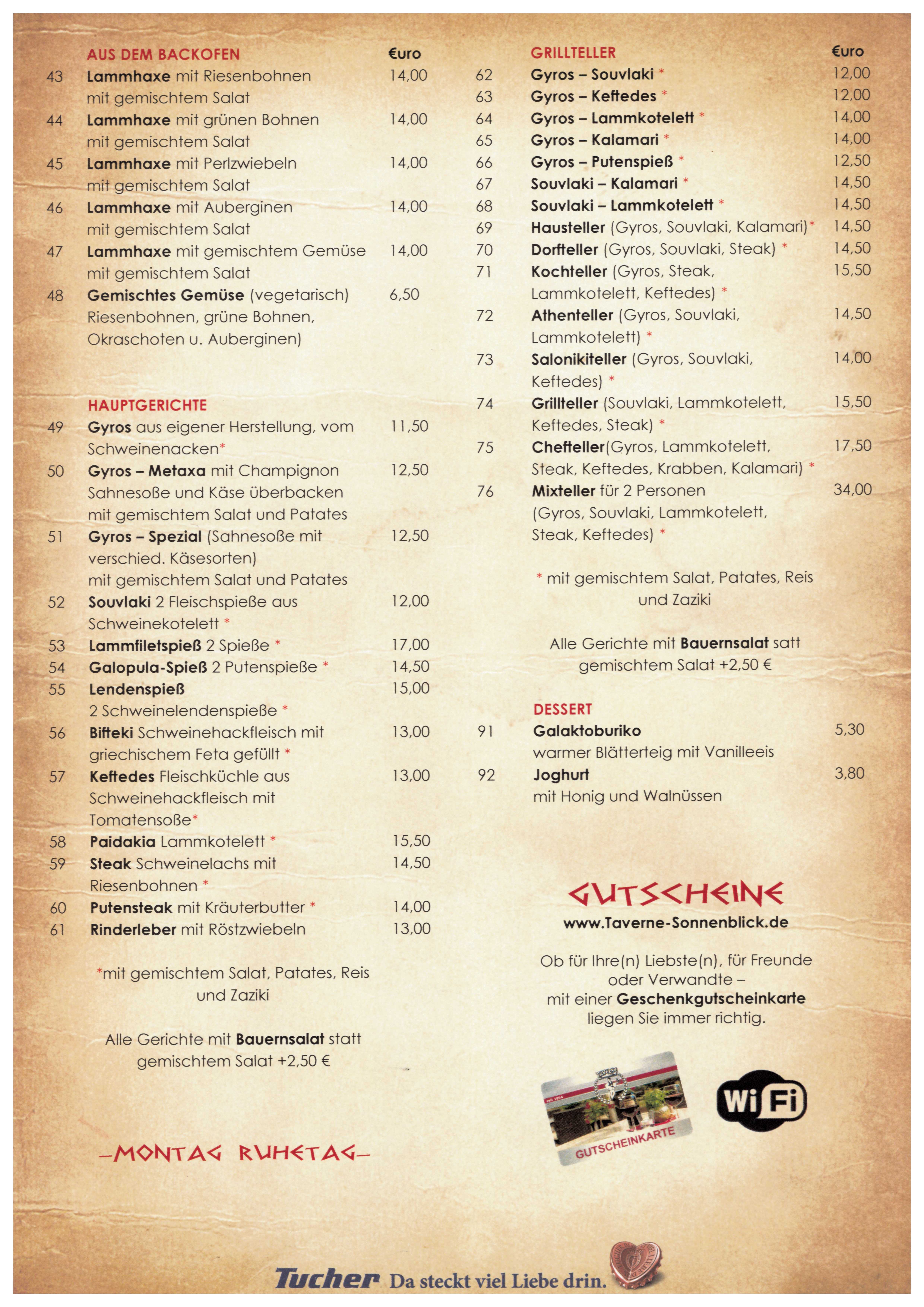 Speisekarte Taverne Sonnenblick Griechisches Spezialitaten Restaurant