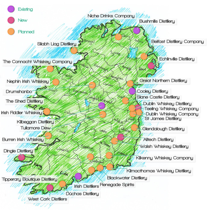 Irish Whiskey Map Diese Karte Verrat Wo Die Neuen Brennereien Der Grunen Insel Liegen Whic Whisky Blog