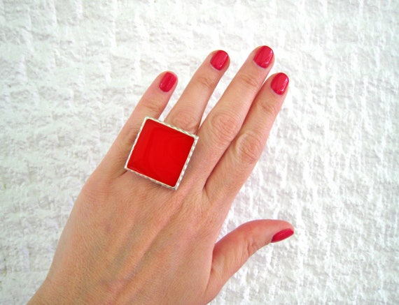 Rubinrot Grosser Quadratischer Ring Aus Harz Mit Einem Etsy