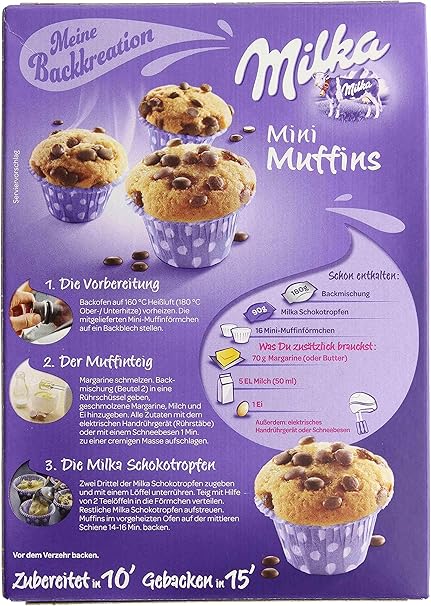 1 Separate a few tablespoons of milk into a small boil Mix in powdered pudding, cornstarch, and flour 2 Bring the rest of the milk to a boil and then add in the separated milk/pudding mix and boil for 10 minutes on medium heat. Milka Mini Muffins, Backmischung, Schokolade, 270 g, 3er Pack (3 x 270 g) Customers also shopped for Page 1 of 1 Start over Page 1 of 1 This shopping feature will continue to load items when the Enter key is pressed In order to navigate out of this carousel please use your heading shortcut key to navigate to the next or previous heading. Kleines Format, großer Geschmack – beides vereint der Milka Mini Muffin Garniert mit viel zarter Milka®Alpenmilch Schokolade und Drops ist der Milka Mini Muffin genau das Richtige für die kleine Versuchung zwischendurch.