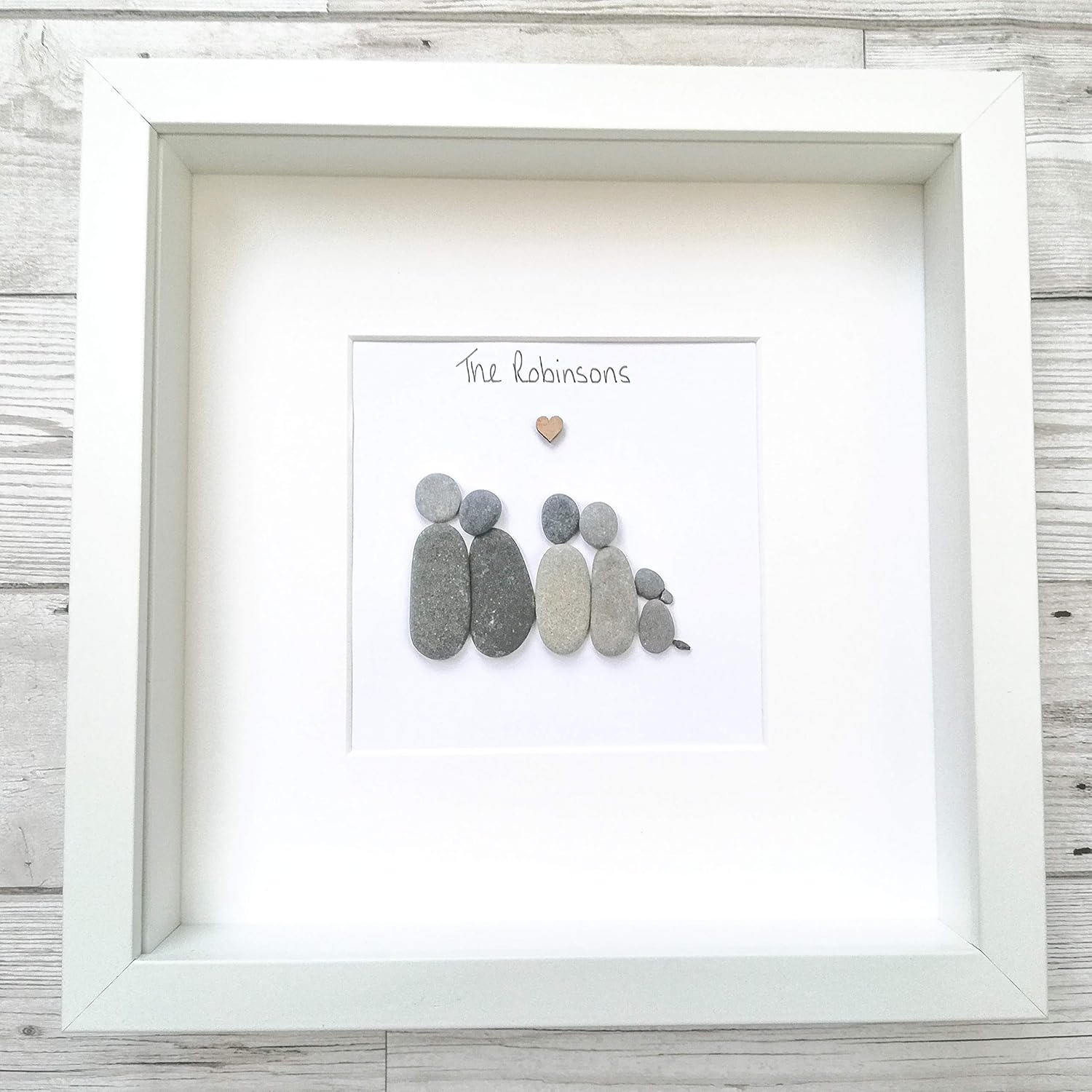 Cornish Pebble Art pictures made in Cornwall Unique pebble art using driftwood, sand, seaweed, shells and pebbles making great gifts for all occasions. Let someone you love know you are thinking about them with a personalised pebble art slate heart Uniquely designed, the pebble art slate hearts are the perfect gift Lovingly crafted, each piece features hand picked Irish pebbles and handpainted elements. Family Rocks Pebble Art by Beachjuls This is our best selling housewarming gift Made from Irish pebbles collected off the shores of Kinsale, West Cork, this piece is truly unique as the home it will hang in Larger family custom orders can be taken also Available in dark or light rock shades, please specify when ordering.