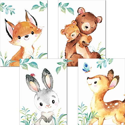 Kinderzimmer Bilder 4er Set Waldtiere Poster Set Kinderzimmer Deko