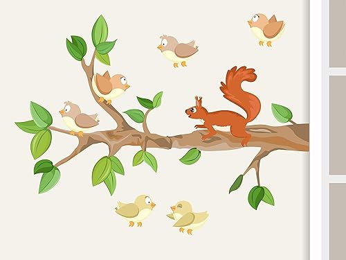 Wandtattoo Ast I Mit Baby Vogeln Und Eichhornchen Waldtiere Wandaufkleber Fur Kinderzimmer Amazon De Handmade