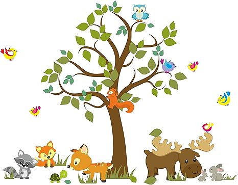 Madras24 Wandtattoo Kinder Babyzimmer Aufkleber Eule Eulen Wandsticker Wand Waldtiere Kinderzimmer Wandaufkleber Deko Dekoration Furs Baby Kindergarten Baum Tiere Xl Amazon De Kuche Haushalt