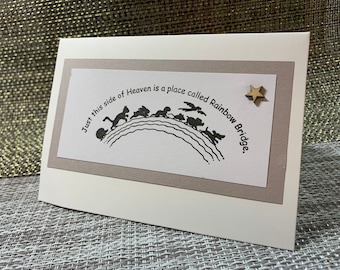 Die Regenbogenbrücke Eine Brücke verbindet Himmel und Erde Wegen der vielen Farben nennt man sie “Brücke des Regenbogens” Auf dieser Seite des Regenbogens liegt ein Land mit Wiesen, Hügeln und saftigem, grünen Gras Wenn ein geliebtes Tier auf Erden für immer eingeschlafen ist, geht es zu diesem schönen Ort. Die Regenbogenbrücke Eine Brücke verbindet den Himmel und die Erde Wegen der vielen Farben nennt man sie die Brücke des Regenbogens Auf jener Seite der Brücke liegt ein Land mit Wiesen, Hügeln und saftigen, grünen Gras Wenn ein geliebtes Tier auf der Erde für immer eingeschlafen ist, geht es zu diesem wunderschönen Ort. Pet Loss Sympathie Karte für Hund oder Katze Besitzer Beileid in Trauer Diejenigen, die wir geliebt haben, gehen jeden neben uns Kann direkt senden Terrier Beileidskarte Regenbogenbrücke ForeverFoxed Aus dem Shop ForeverFoxed 5 von 5 Sternen (1016) 1016 Bewertungen 4,06.