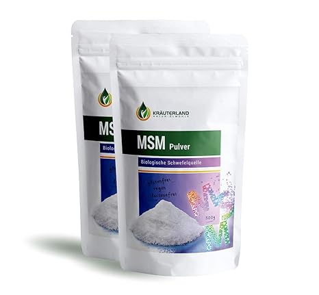 Krauterland Msm Pulver Methylsulfonylmethan 1 Kg Organischer Schwefel Pur 99 9 Rein Naturlich Vegan Deutsche Premiumqualitat Ohne Zusatzstoffe 2x500g Amazon De Lebensmittel Getranke