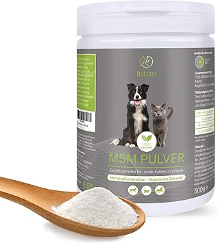 Nutrani Msm Pulver Fur Hund Katze Und Pferd 500g 100 Naturlicher Organischer Schwefel Methylsulfonylmethan Zur Unterstutzung Der Gelenke Sehnen Bander Gepflegtes Fell Amazon De Haustier