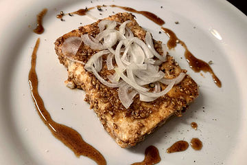 Dieses griechische Rezept kann sich nicht nur optisch sehen lassen, auch geschmacklich ist der Schafskäse im Sesammantel mit Honig mehr als überzeugend Ein echter Geheimtipp Zutaten (für 4 Personen) 400 g FetaKäse 2 geschlagene Eier 3 EL Mehl 3 EL Sesam 4 EL Olivenöl 2 EL Honig Zubereitung Den FetaKäse in Scheiben schneiden oder.