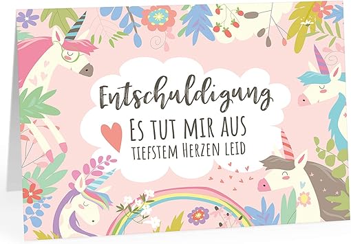 Grosse Din Klapp Karte Mit Umschlag Einhorn Rosa Sorry Entschuldigung Verzeih Mir Es Tut Mir Leid Amazon De Burobedarf Schreibwaren