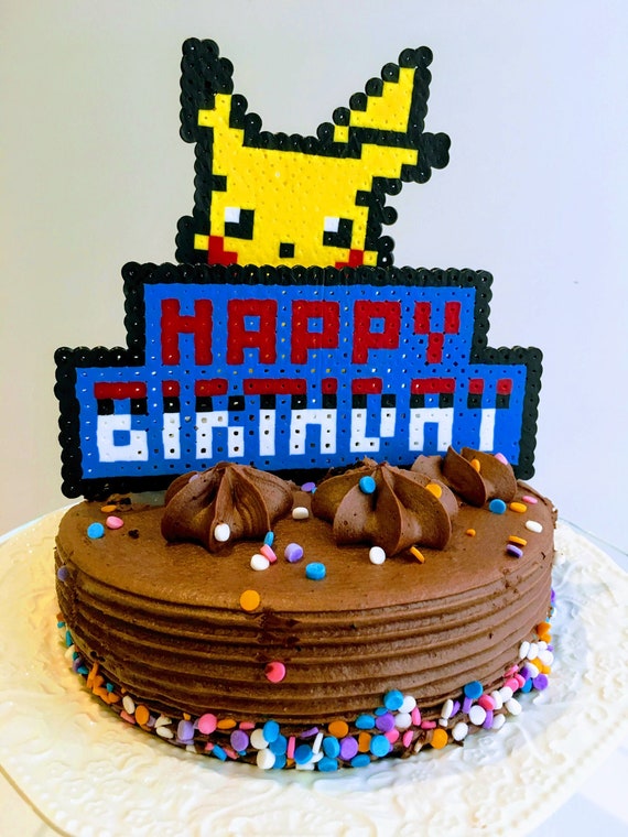 Pokemon Pikachu Happy Birthday Cake Topper 8 Bit Pixel Art Etsy