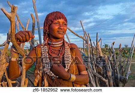 Turmi Athiopien Afrikas Senken Omo Tal Dorf Mit Bena Stamm Zuerst Ehefrau Lacheln In Sonnenuntergang In Holz Hutte Dorf 24 Stock Bild Zf6 Fotosearch