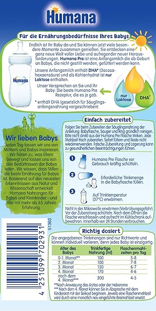 Humana Ha Pre Hypoallergene Anfangsnahrung Fur Babys Mit Erhohtem Allergie Risiko Milchpulver Als Babynahrung Von Geburt An 500 G Amazon De Lebensmittel Getranke