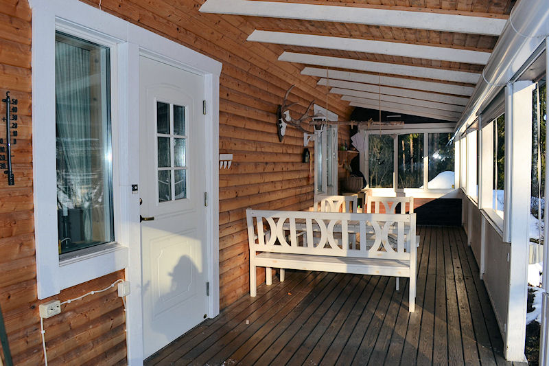 Holzhaus Mit Schwedischer Veranda Und Sprossenfenster Hessl