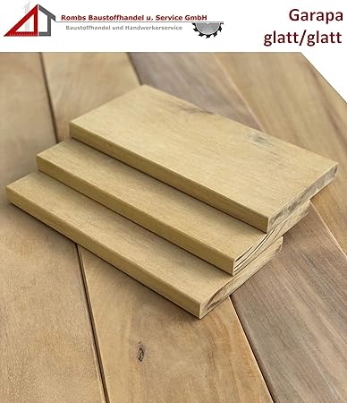 Jetzt hier anfragen Vogelhäuser und Glockentürme In unserem Souvenirshop finden Sie holz geschnitzte Produkte perfekt zum Verschenken!. HolzTerrassendiele Garapa glatt Materialeigenschaften Diese 25 mm starke Terrassendielen werden aus massivem GarapaHolz hergestellt Garapa ist ein Tropenholz mit honiggelber bis goldbrauner Farbgebung und unregelmäßiger, welliger Faserstruktur Wie die meisten tropischen Hölzer zählt Garapa zu den Harthölzern und hat Dauerhaftigkeitsklasse 3. Terrassendielen Garapa Mit Garapa Edelholz machen Sie Ihre Terrasse zu Ihrem zweiten Wohnzimmer!.