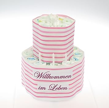 Zweistockige Windeltorte Willkommen Im Leben Xxl Rosa Geschenk Zur Taufe Geburtsgeschenk Fur Madchen Taufgeschenk Pullerparty Geschenk Zur Geburt Fur Madchen Amazon De Baby
