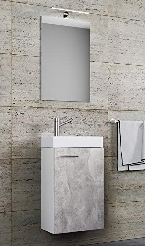 Vcm Waschplatz Waschbecken Schrank Spiegel Wc Gaste Toilette Badmobel Klein Schmal Slito Spiegel Weiss Beton Optik Amazon De Kuche Haushalt