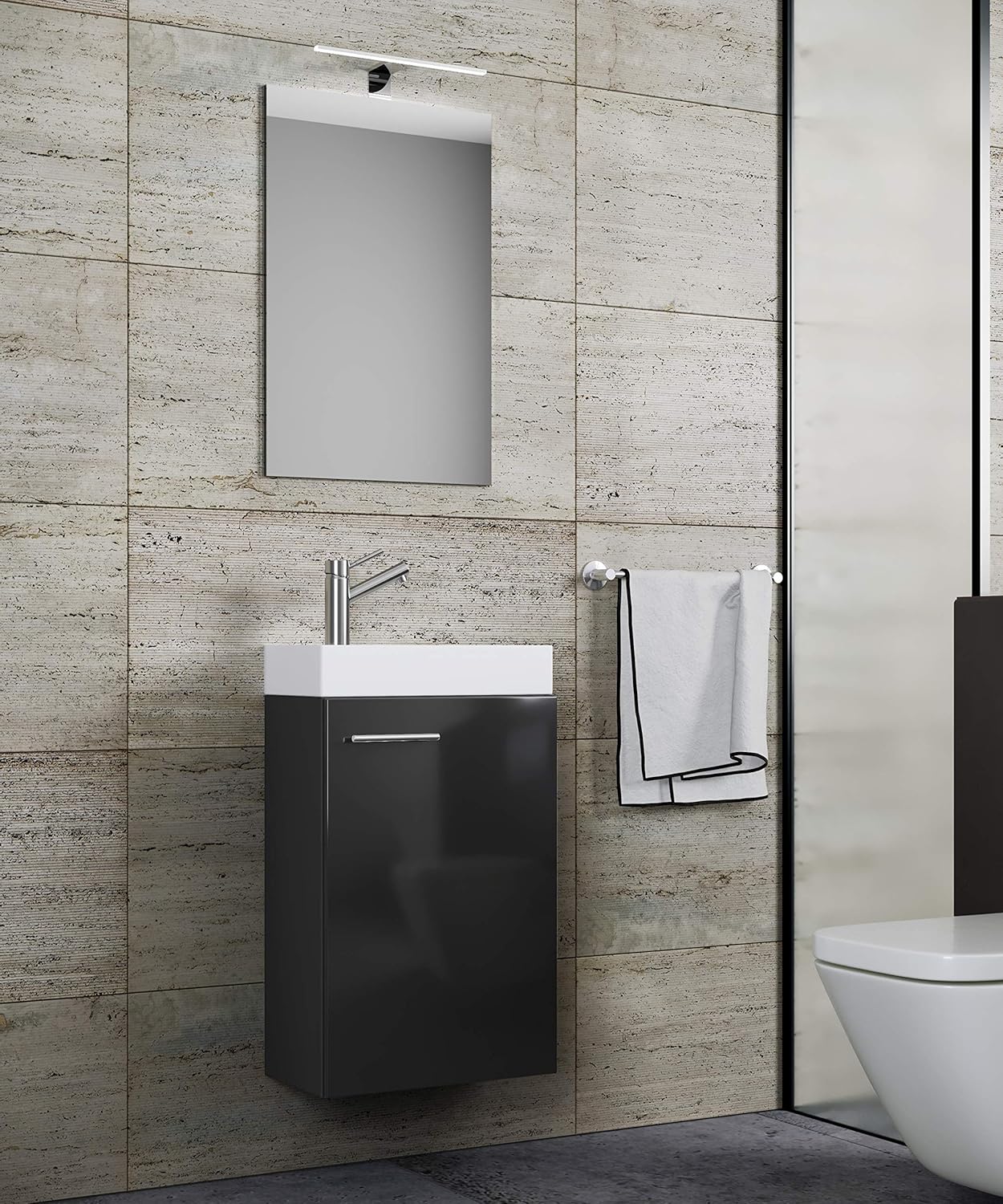 Waschplatz Schwarz Waschbecken Schrank Spiegel Wc Gaste Toilette Badmobel Klein