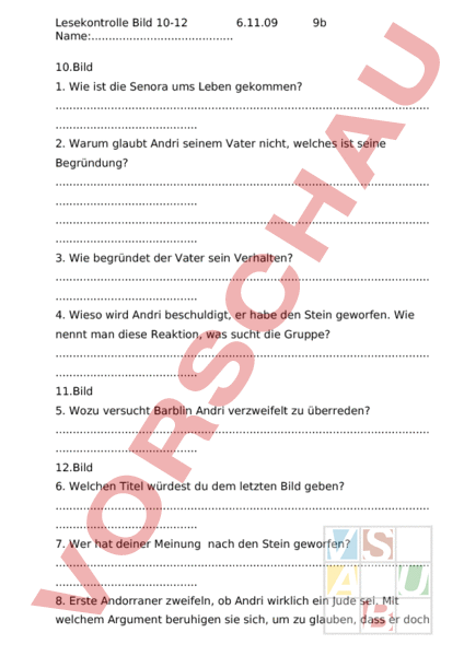 Arbeitsblatt Max Frisch Andorra Fragen 7 12 Deutsch Textverstandnis