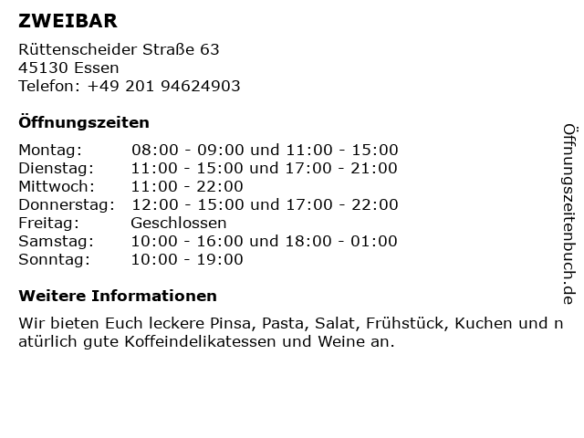 ᐅ Offnungszeiten Zweibar Gemarkenstr 44 In Essen