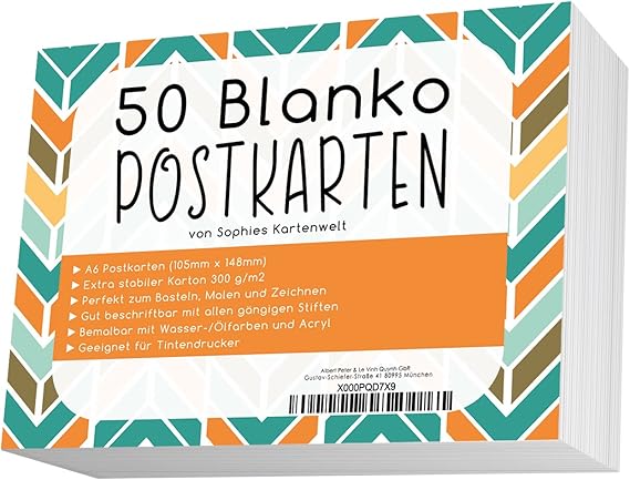 Blanko Postkarten Set Mit 50 Karten Zum Selbstgestalten Und Selbstbedrucken Hochqualitatives 300g Qm Papier Von Sophies Kartenwelt Amazon De Burobedarf Schreibwaren