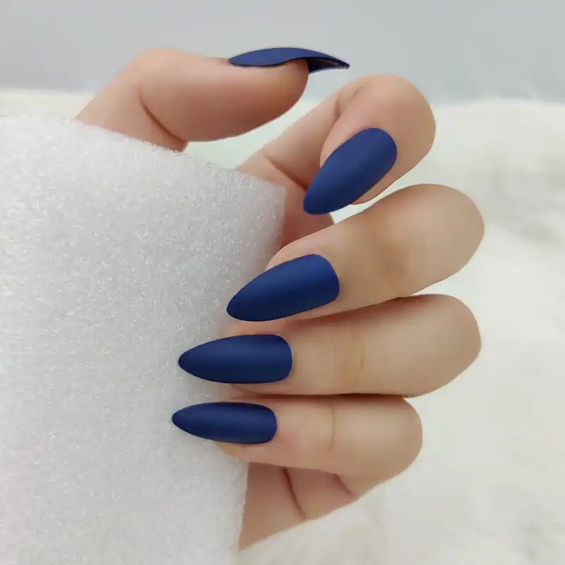 Dark Blue Matte Nail Design For Almond Nails Matte Nails Design Blue Nails Blue Matte Nails
