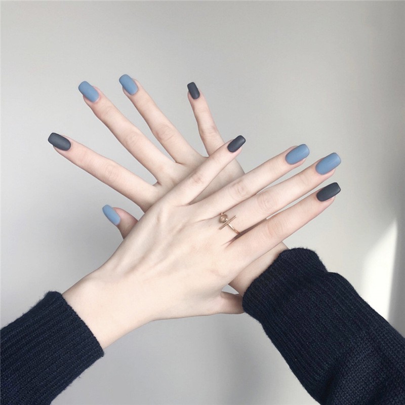 24pcs Ins Style Matte Blue Black Fake Nails Finished Solid Color Square Head False Nails Art Shopee Philippines