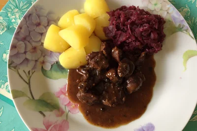 Rehgulasch Mit Semmelknodel Und Rotkraut Allekochen Com