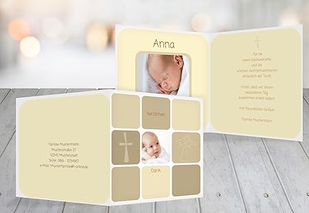 Dankeskarten für Hochzeit, Geburt, Taufe, Kommunion, Geburtstag, Trauer uvm günstig online gestalten und drucken lassen bei Dankeskartecom Hier finden Sie die größte Auswahl an Designvorlagen von vintage bis modern!. Geburt & Taufe › Dankeskarten des Polaroids einen persönlichen Danksagungstext an Ihre Familie und Freunde und schon haben Sie Ihre personalisierte Dankeskarte mit Foto und eigenem Text gestaltet Schriftartund Farbe können, je nach Geschmack, mit Hilfe unsere Editors ebenfalls geändert werden. Nicht nur die Taufpaten freuen sich riesig über die Dankeskarte zur Taufe und bewahren das Andenken sorgfältig auf Mit einer individuellen Karte bleibt der unvergessliche für Sie und alle Gäste immer gegenwärtig Gestalten Sie Ihre Taufkarten ganz einfach online mit eigenen Fotos und Texten.