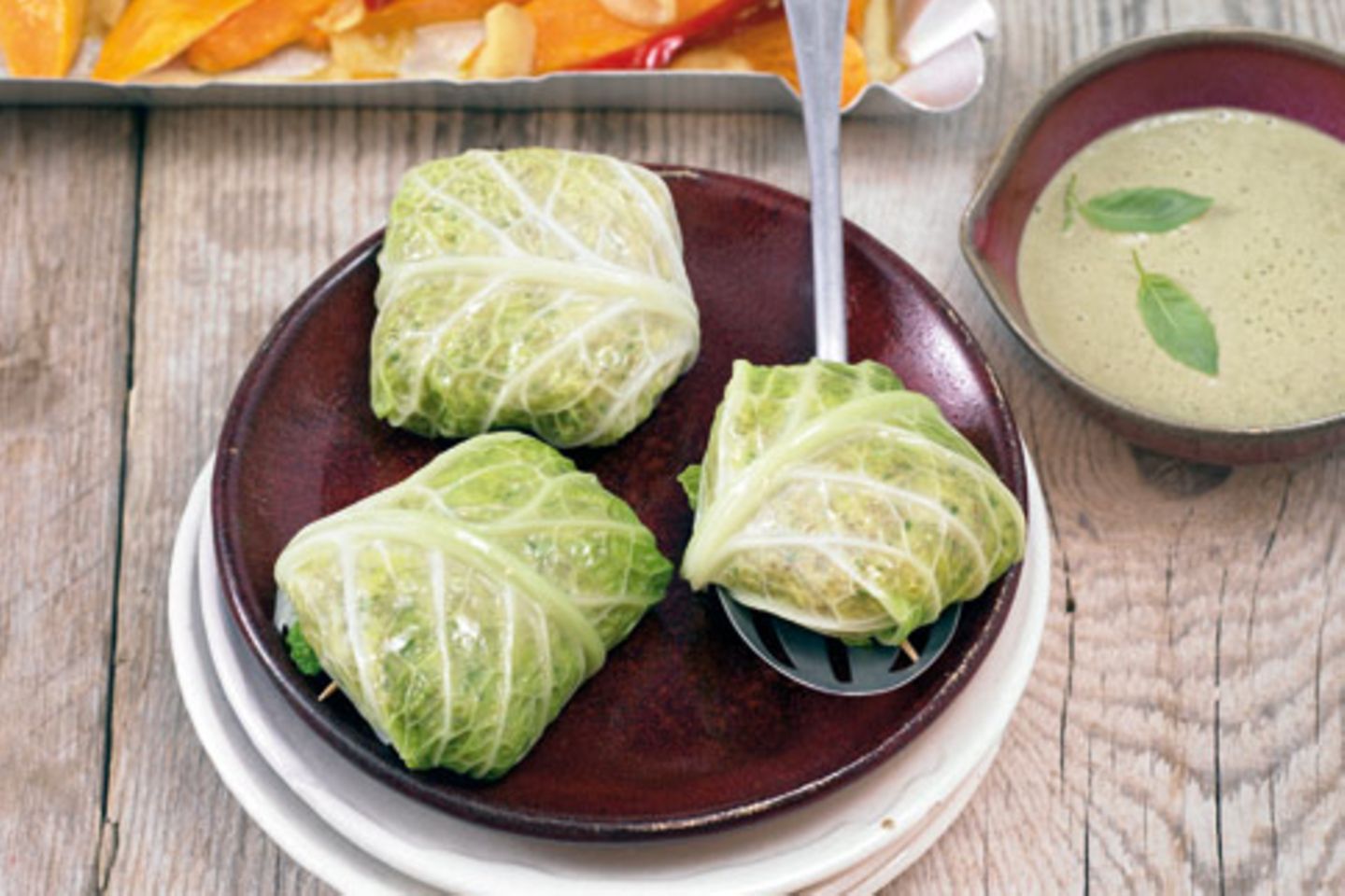 Vegane Wirsing Rouladen Mit Kurbis Hirse Fullung Rezept Fit For Fun