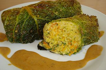 18 Ideen aus der Küche!. Die gedämpften Wirsingrouladen werden in diesem Rezept vegan zubereitet Sie sind ein tolles Gericht für den Herbst und Winter und lassen sich schnell zubereiten Die Füllung besteht aus Reis und Champignons und kann durch frische Kräuter und Gewürze ergänzt werden. Wirsingrouladen Sechs große Wirsingblätter abtrennen und den harten Strunk an der Außenseite abflachen Einen großen Topf mit Wasser erhitzen und die Wirsingblätter jeweils zuerst 23 Minuten im heißen Wasser blanchieren und anschließend in kaltem Wasser „abschrecken“.