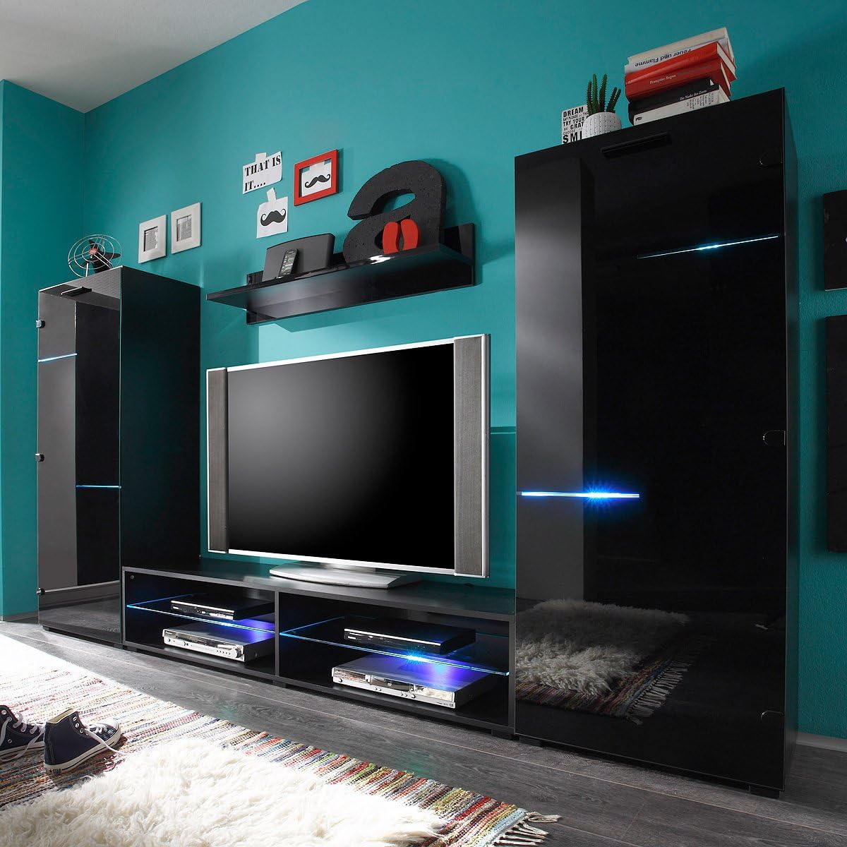 Mobel Akut Wohnwand Media Light Schwarz Mit Glasfronten Inkl Rgb Beleuchtung Amazon De Kuche Haushalt