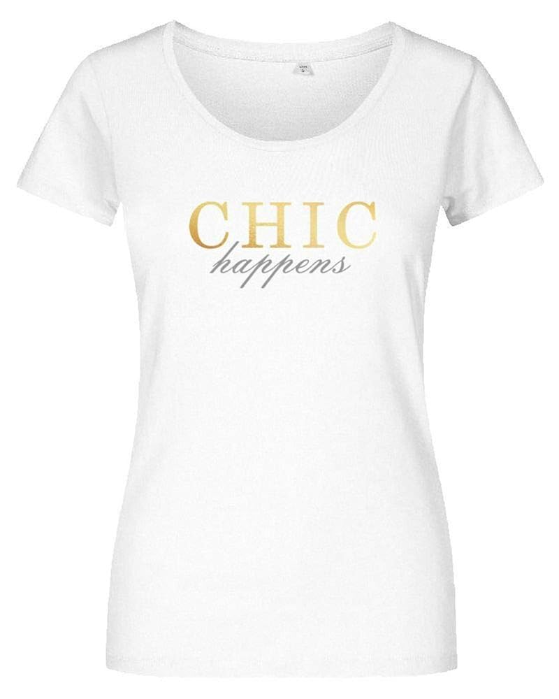 Damen Tshirts Und Tops Schwarz Weiss Lustige Spruche Chic Happens Statement Shirts Bekleidung Tops Shirts