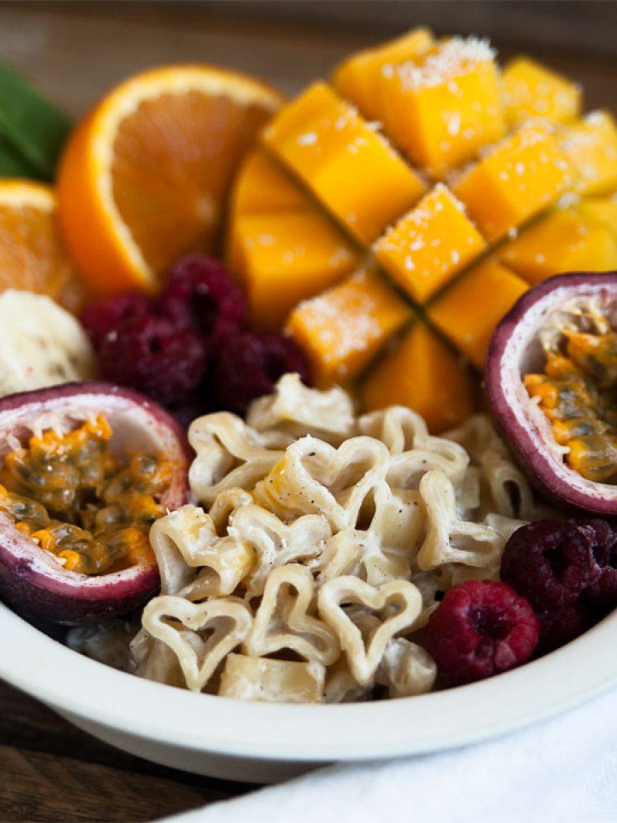 Vegane Milchnudeln Mit Kokosmilch Und Frischen Fruchten Vegan Mom By Anna Elisie