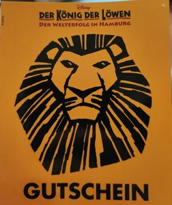 Bei Travelcircus könnt ihr euch einen MusicalWertgutschein für verschiedene Musicals sichern und dadurch sparen MusicalUniversalgutschein 21 im Wert von 0 € für 149 € bei Travelcircus ihr spart 50€ einlösbar im Jahr 21 auf Musicalreisen, zB König der Löwen, Tanz. Einen Hamburg Gutschein zu verschenken ist eine schöne Geste egal ob es eine Hafen oder Stadtrundfahrt in Hamburg ist, ein Musicalbesuch zB für Disneys DER KÖNIG DER LÖWEN oder eine Hamburg Reise übers Wochenende Ein schönes Geschenk braucht auch immer eine schöne Verpackung, aber bei einem Hamburg Gutschein ist es meist nicht leicht die richtige Geschenkverpackung zu finden. Lasst Euch in Hamburg vom Musical Disneys DER KÖNIG DER LÖWEN mit Übernachtung in die Welt des DisneyWelthits entführen Startet gemeinsam mit Simba in ein unvergessliches Abenteuer!.