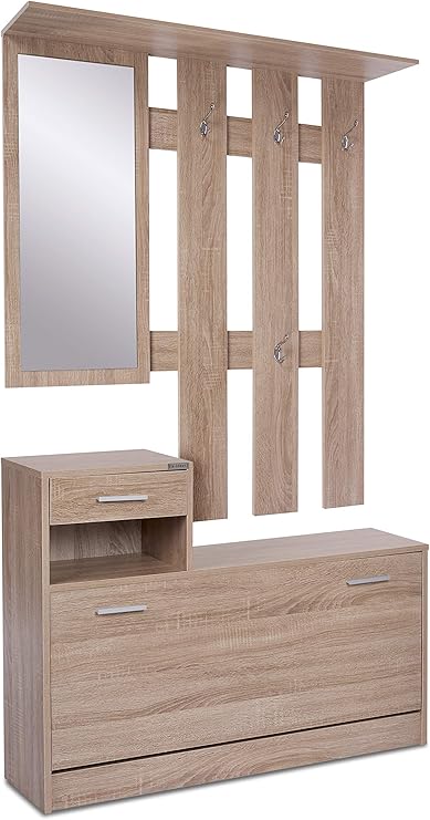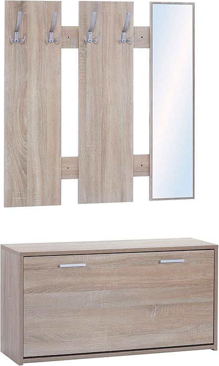 Ts Ideen 4er Set Garderobe Spiegel Schuhschrank Schuhkipper 2 Wandpaneele Kleiderhaken Eiche Sonoma Kuche Haushalt Wohnen Mobel Wohnaccessoires